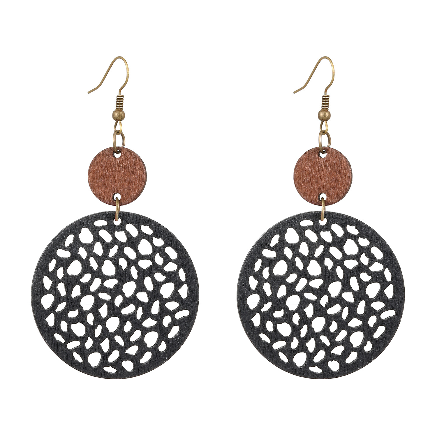 Earrings / Black,Wooden