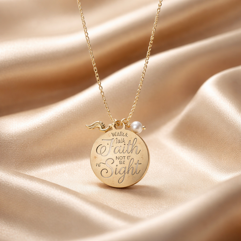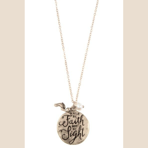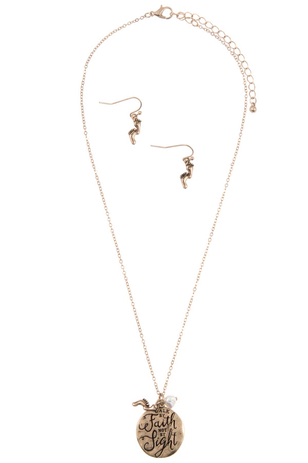 WALK BY FAITH NOT BY SIGHT DISK PENDANT NECKLACE SET