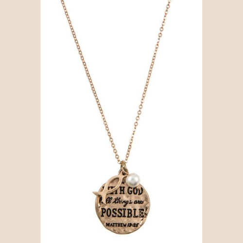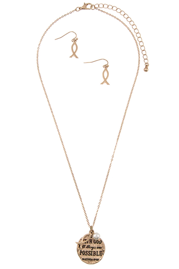 Matthew 19:26 Message Disk Pendant Necklace Set