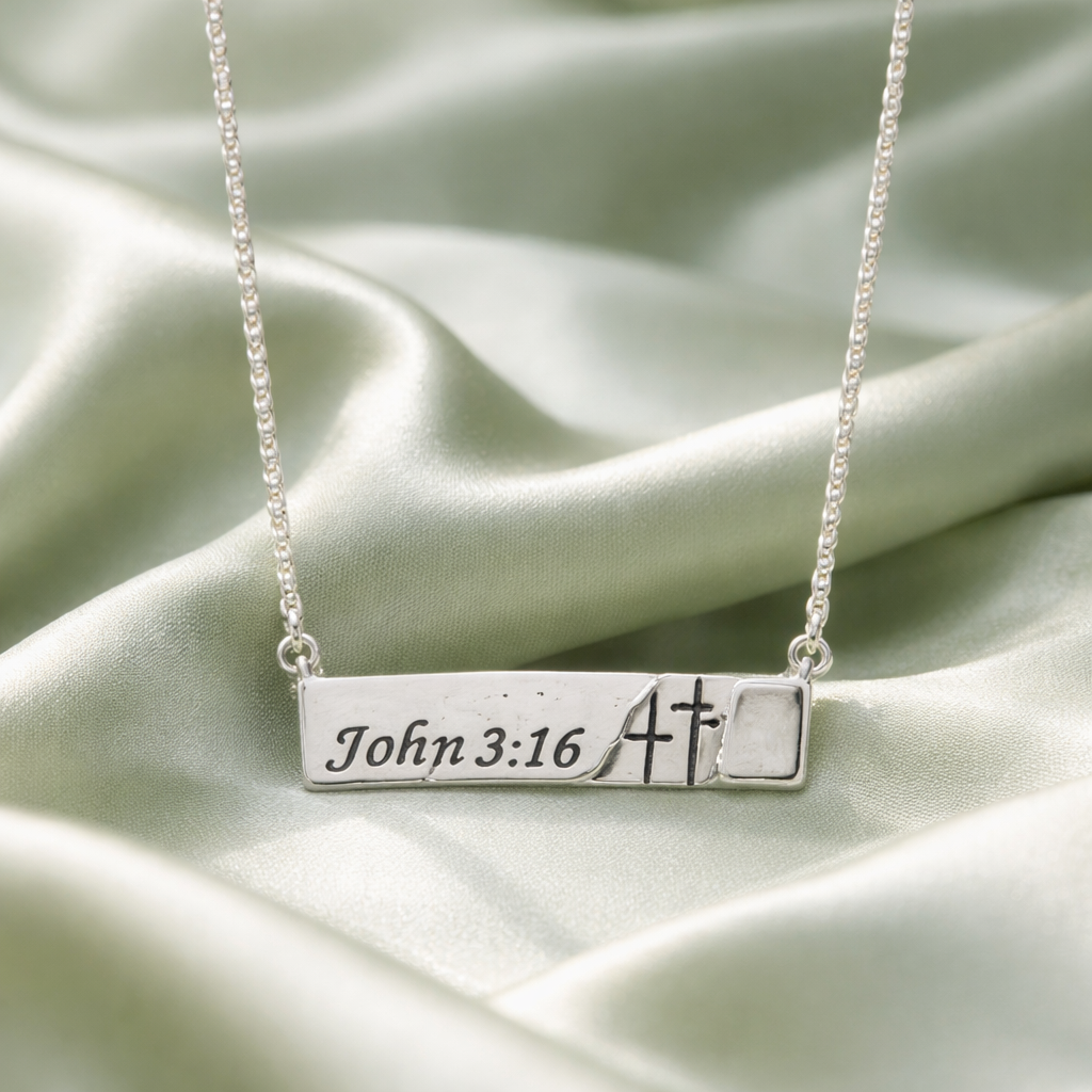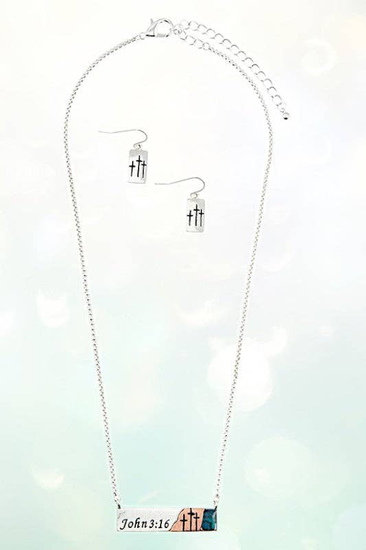 BAR PENDANT NECKLACE AND CROSS ETCHED BAR DANGLE EARRING SET, APPROX LENGTH:16"