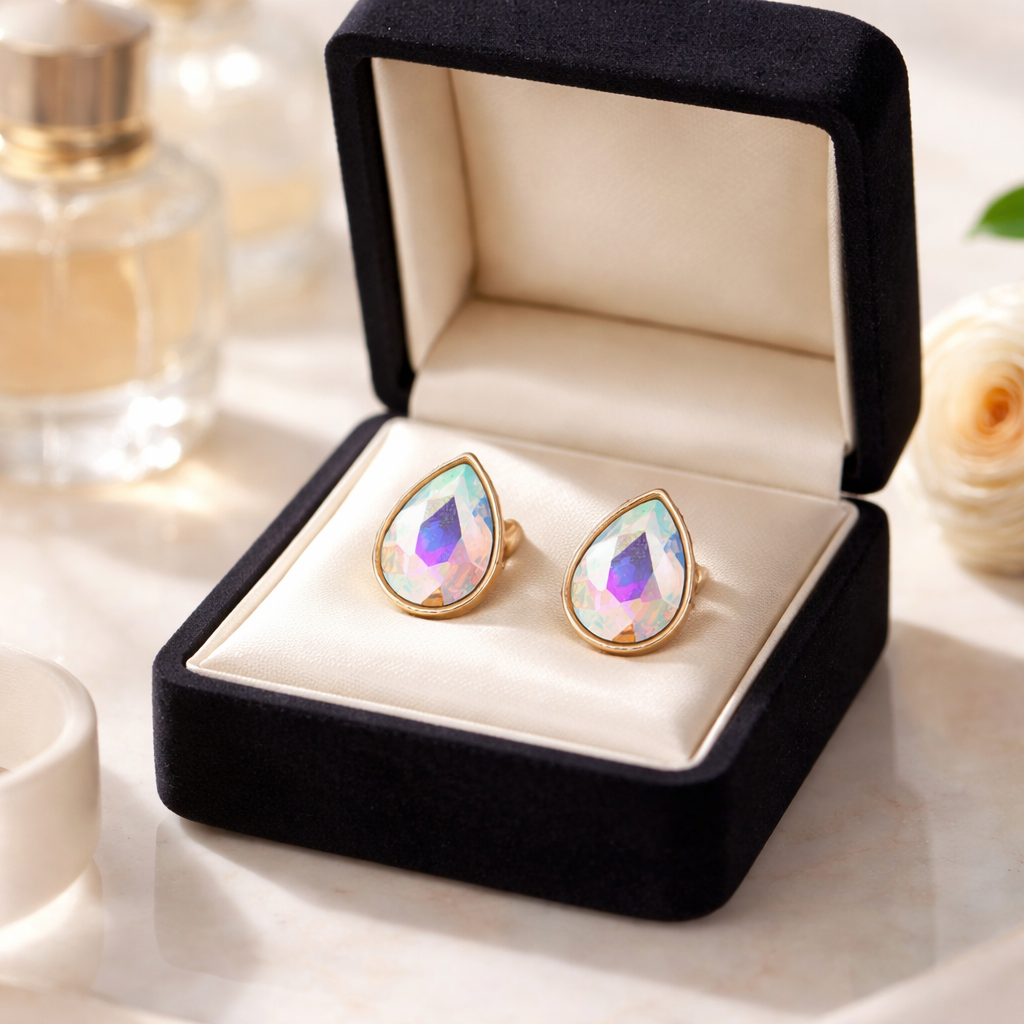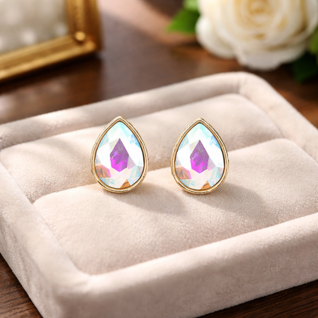 FACETED CRYSTAL GEM TEARDROP POST EARRING